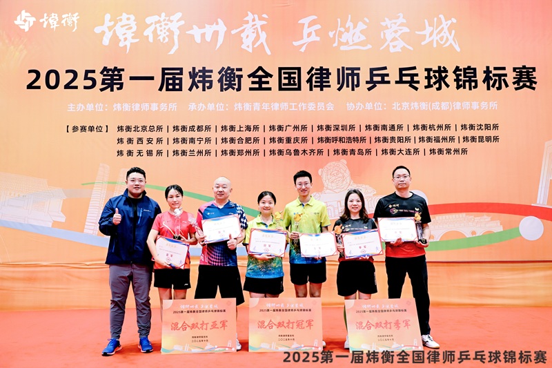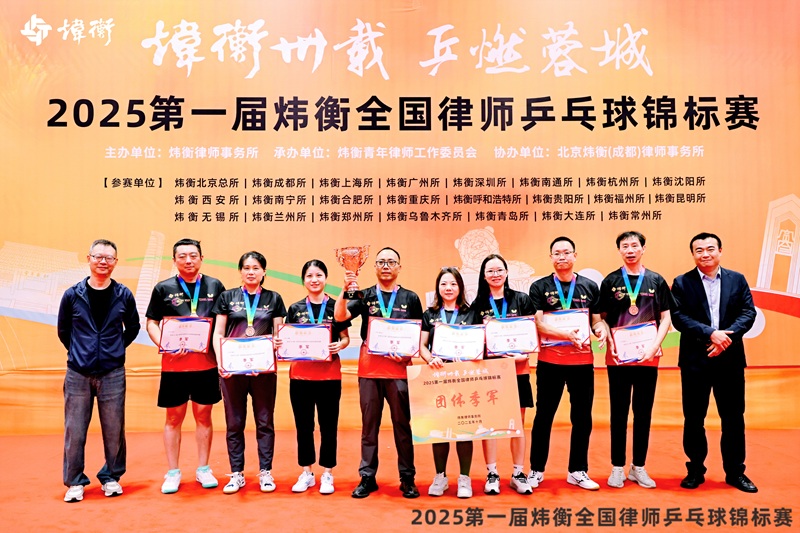 10月18日~19日,2025第一届炜衡全国律师乒乓球锦标赛在成都隆重举行并圆满落幕。本次赛事汇聚了来自炜衡全国各总分所的二十余支乒乓球队,赛场高手云集,竞争异常激烈。炜衡广州乒乓球队积极参赛,凭借出色的发挥与默契的团队协作,在单打、双打及团体等多个项目中取得优异成绩,展现了炜衡广州律师奋勇争先、团结拼搏的精神风貌。