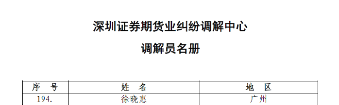 近日,深圳证券期货业纠纷调解中心正式公布新一届调解员名册。根据《深圳证券期货业纠纷调解中心章程》《调解员管理办法》等相关规定,经该中心第三届理事会第二次会议审议决定,共261名专业人士获聘调解员。北京市炜衡(广州)律师事务所徐晓惠律师凭借深厚的法学理论功底与丰富的实务经验成功入选。