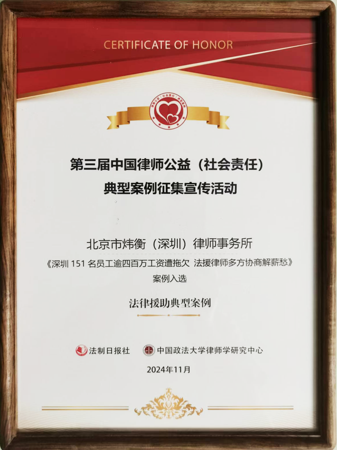炜衡深圳所余文景律师《深圳151名员工逾四百万工资遭拖欠,法援律师多方协商解薪愁》